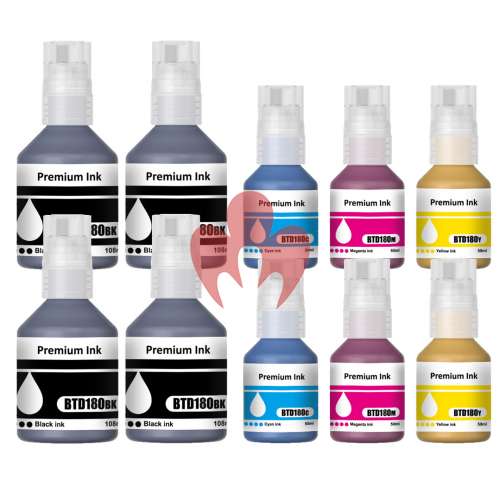![]() 10 Pack Compatible Brother BTD180 Ink Bottle Set (4BK,2C,2M,2Y) |