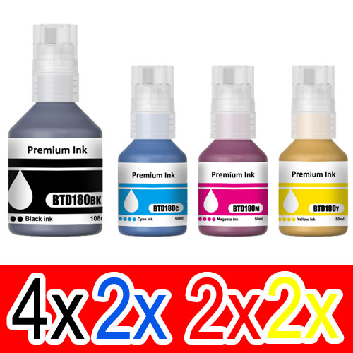 8 Pack Brother BTD180 Ink Bottle Set (2BK,2C,2M,2Y)
