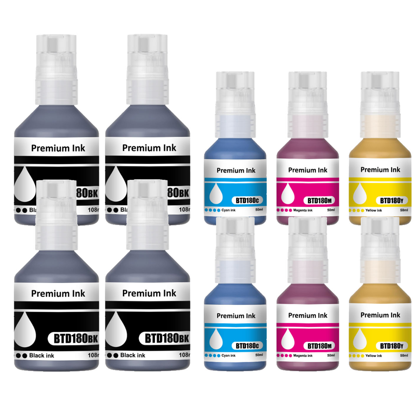 10 Pack Compatible Brother BTD180 Ink Bottle Set (4BK,2C,2M,2Y)