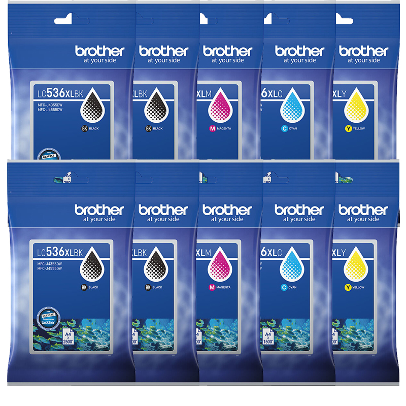 10 Pack Brother LC-536XXL Ink Cartridge Set (4BK,2C,2M,2Y)