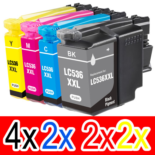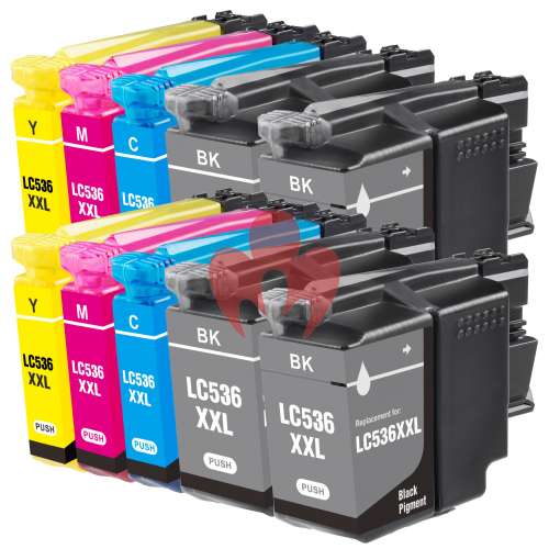 ![]() 10 Pack Compatible Brother LC-536XXL Ink Cartridge Set (4BK,2C,2M,2Y) |