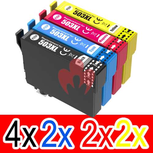 8 Pack Compatible 503XL Ink Cartridge Set (2BK,2C,2M,2Y) High Yield for Epson