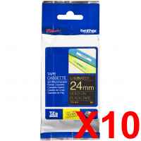 10 x Genuine Brother TZe-354 24mm Gold on Black Laminated Tape 8 metres