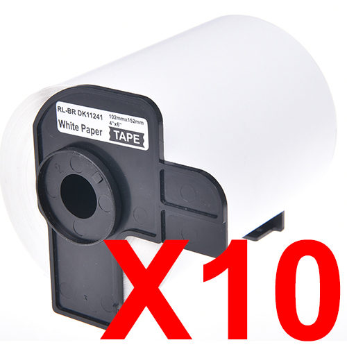 10 x Compatible Brother DK-11241 White Paper Label Roll - 102mm x 152mm - 200 Labels per Roll