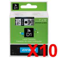 10 x Genuine Dymo D1 Label Tape 24mm Black on Clear 53710 - 7 metres