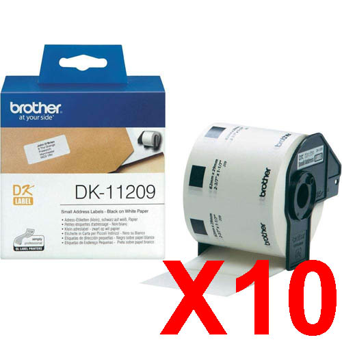 10 x Genuine Brother DK-11209 White Paper Label Roll - 29mm x 62mm - 800 Labels per Roll