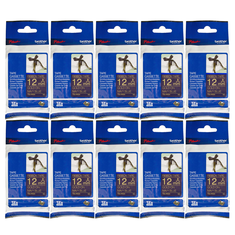 Buy High Standards and Low prices 10 x Genuine Brother TZe-RN34 12mm Gold on Navy Blue Ribbon Tape 4 metres here at HotToner and save! |