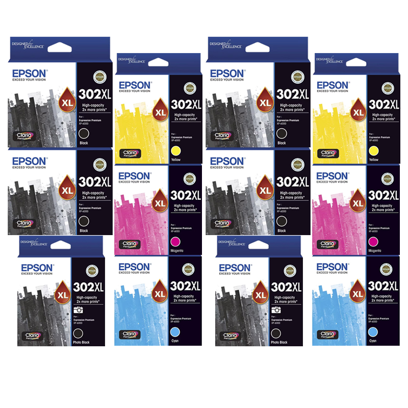 ![]() 12 Pack Genuine Epson 302XL Ink Cartridge Set (4BK,2PBK,2C,2M,2Y) High Yield |