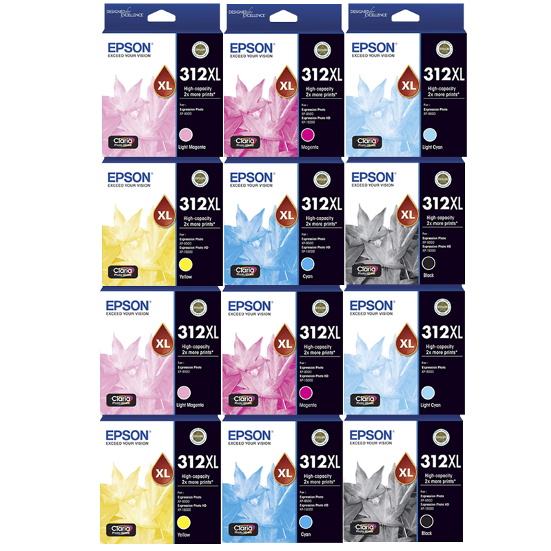 ![]() 12 Pack Genuine Epson 312XL Ink Cartridge Set (2BK,2C,2M,2Y,2LC,2LM) High Yield |
