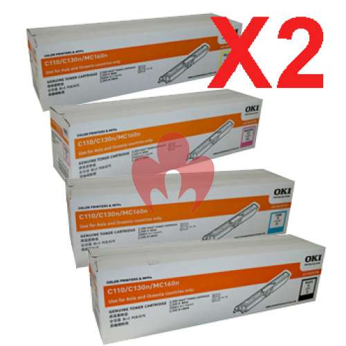 2 Lots of 4 Pack Genuine OKI C110 C130 MC160 Toner Cartridge Set High Yield