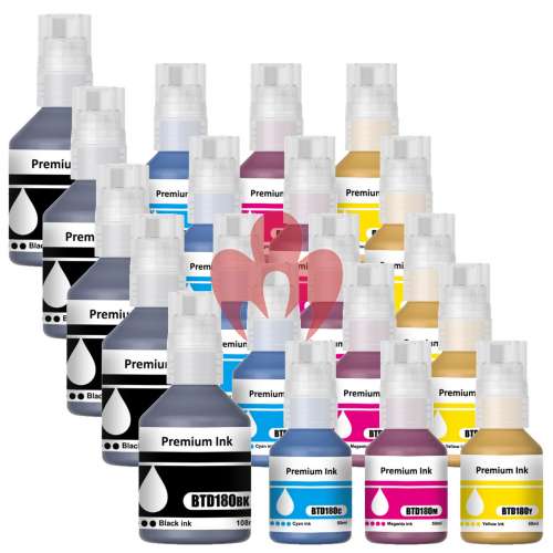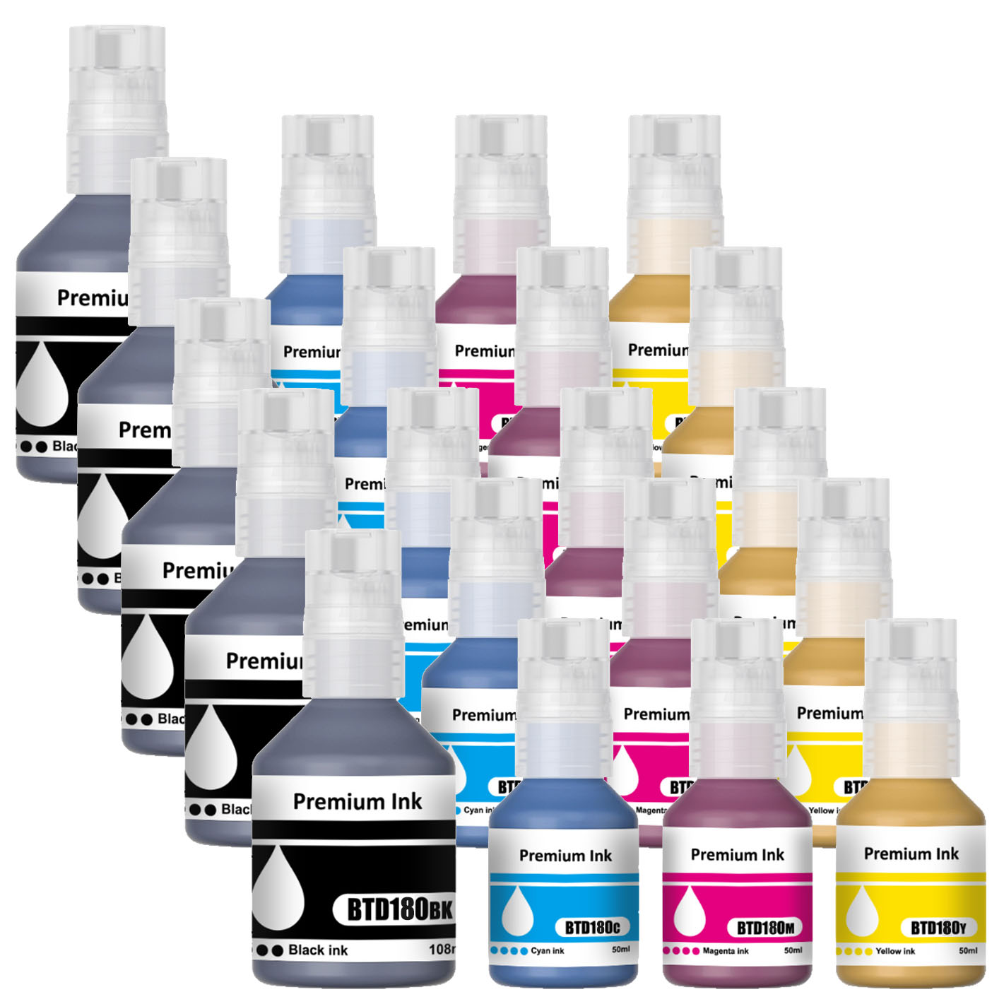 20 Pack Compatible Brother BTD180 Ink Bottle Set (5BK,5C,5M,5Y)