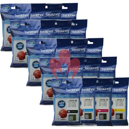 Buy High Standards and Low prices 20 Pack Genuine Brother LC-431XL Ink Cartridge High Yield Set (5BK,5C,5M,5Y) here at HotToner and save! |