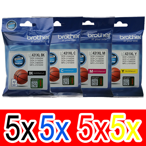 20 Pack Genuine Brother LC-431XL Ink Cartridge High Yield Set (5BK,5C,5M,5Y)