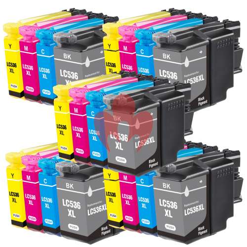 20 Pack Compatible Brother LC-536XL Ink Cartridge Set (5BK,5C,5M,5Y)