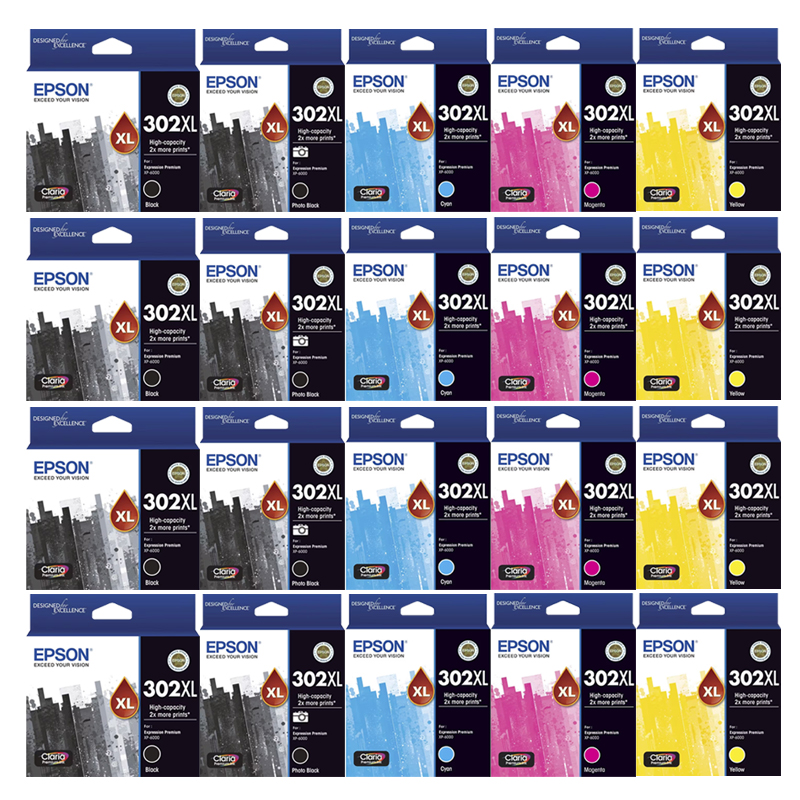 ![]() 20 Pack Genuine Epson 302XL Ink Cartridge Set (4BK,4PBK,4C,4M,4Y) High Yield |