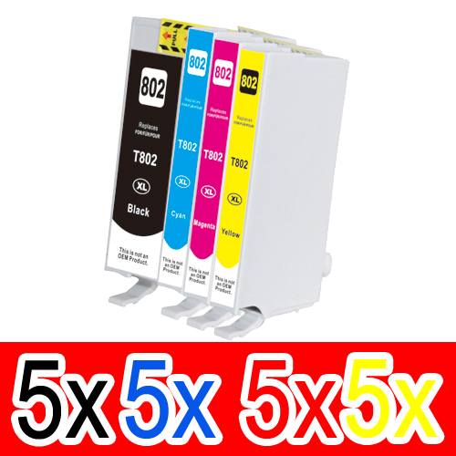 20 Pack Epson 802XL Ink Cartridge Set (5BK,5C,5M,5Y) High Yield