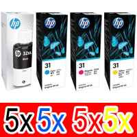 5 Pack HP 32XL 31 Ink Bottle Set (2BK,1C,1M,1Y)