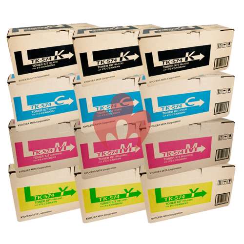 Buy High Standards and Low prices 3 Lots of 4 Pack Genuine Kyocera TK-574 Toner Cartridge Set FS-C5400DN here at HotToner and save! |