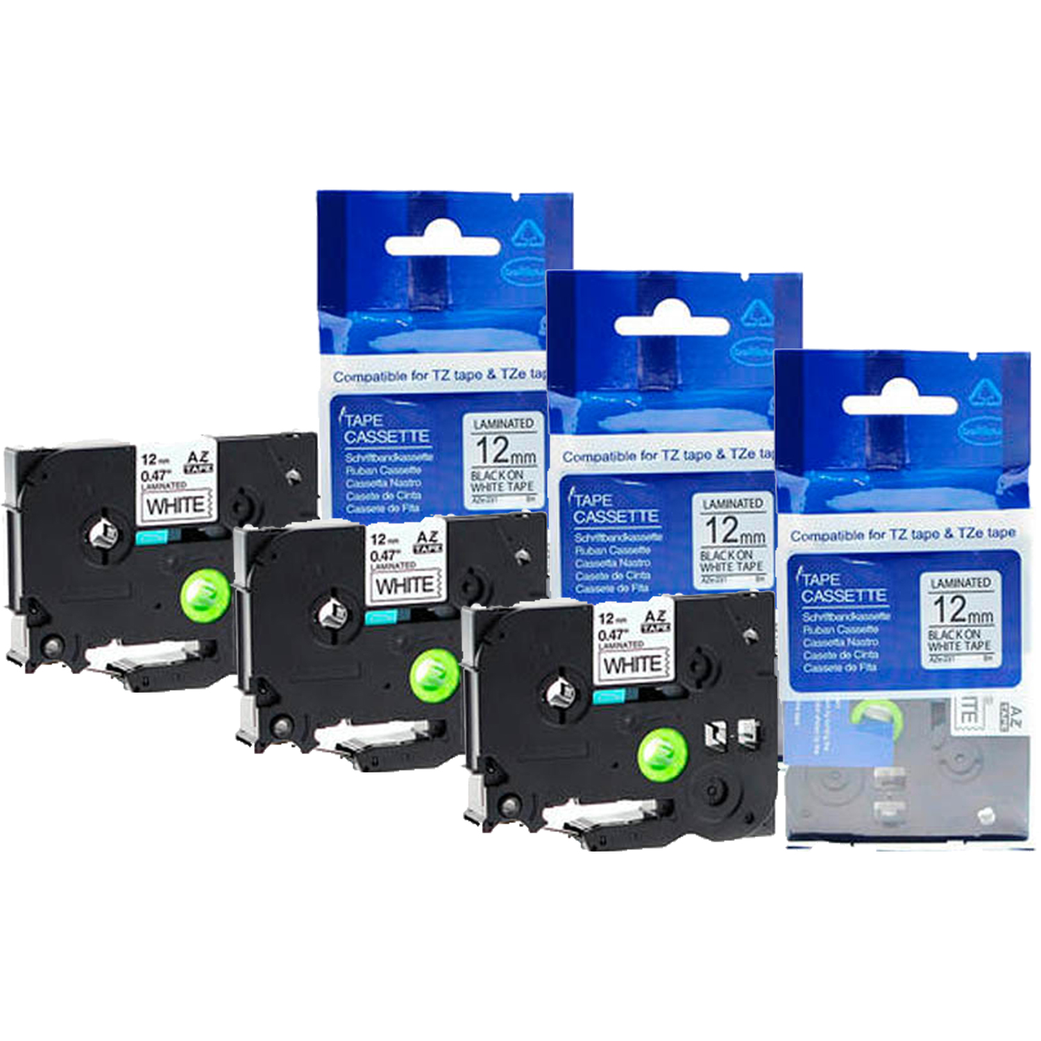 3 x Compatible Brother TZe-231 12mm Black on White Laminated Tape 8 metres