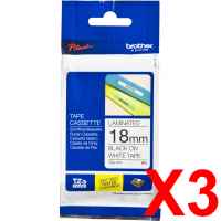3 x Genuine Brother TZe-241 18mm Black on White Laminated Tape 8 metres