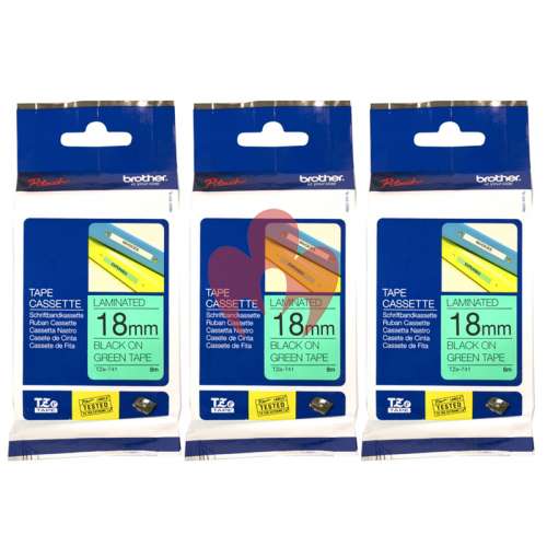 ![]() 3 x Genuine Brother TZe-741 18mm Black on Green Laminated Tape 8 metres |