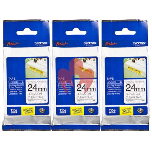 Buy High Standards and Low prices 3 x Genuine Brother TZe-S151 24mm Black on Clear Strong Adhesive Laminated Tape 8 metres here at HotToner and save! |