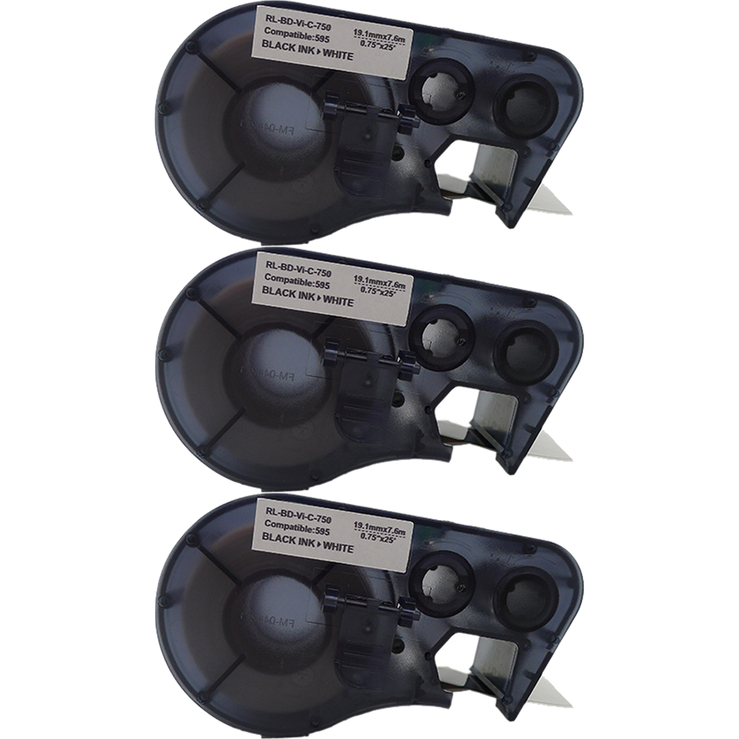 3 x Compatible Brady MC-750-595-WT-BK 143372 Black on White 19.1mm x 7.62m B-595 Durable Vinyl Material Label