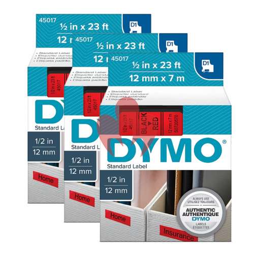 Click here to view 3 x Compatible Dymo D1 Label Tape 12mm Black on Red 45017 at only $35.53