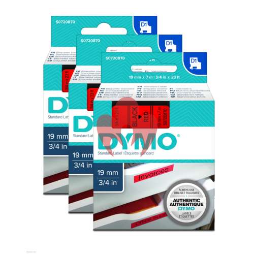 ![]() 3 x Genuine Dymo D1 Label Tape 19mm Black on Red 45807 - 7 metres |