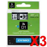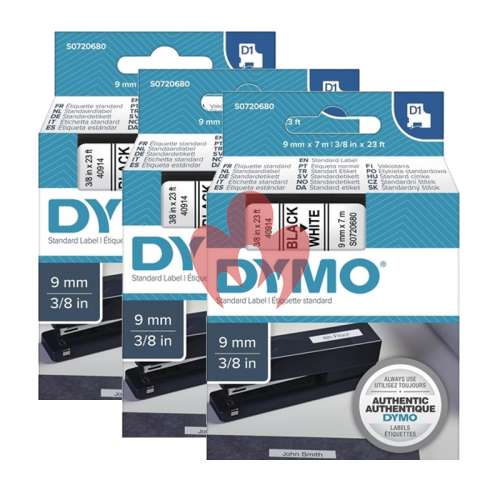 3 x Dymo D1 Label Tape 9mm Black on White 40913
