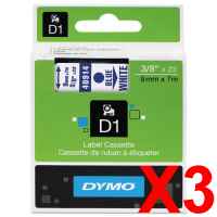 3 x Genuine Dymo D1 Label Tape 9mm Blue on White 40914 - 7 metres