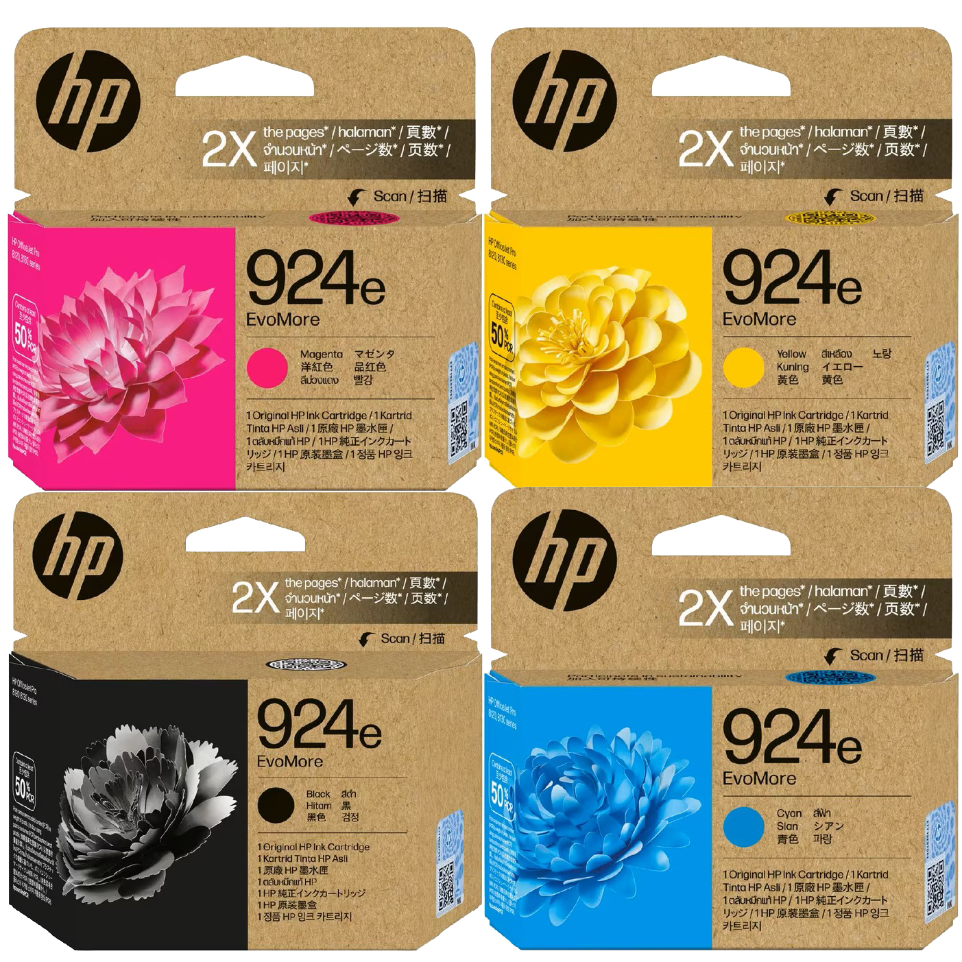 4 Pack Genuine HP 924e EvoMore Ink Cartridge Set (1BK,1C,1M,1Y) 4K0V0NA 4K0V7NA 4K0V8NA 4K0V9NA
