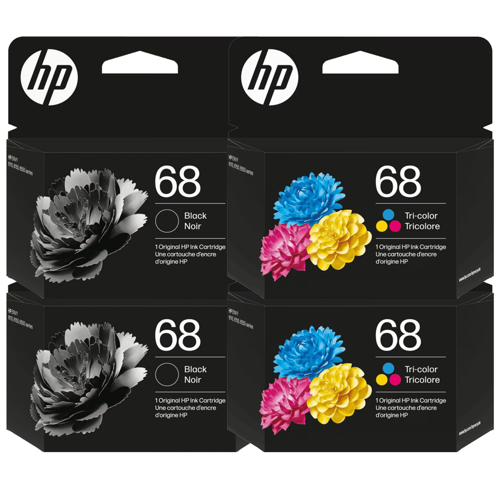 4 Pack HP 68e & 68 Black & Colour Ink Cartridge Set (2BK,2C) 7FP22TA 7FP20TA