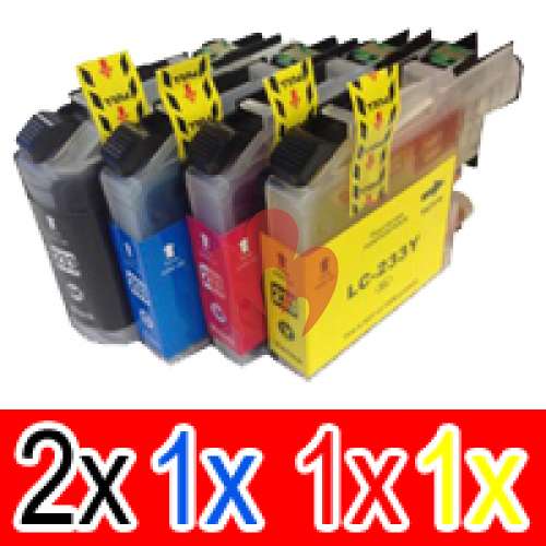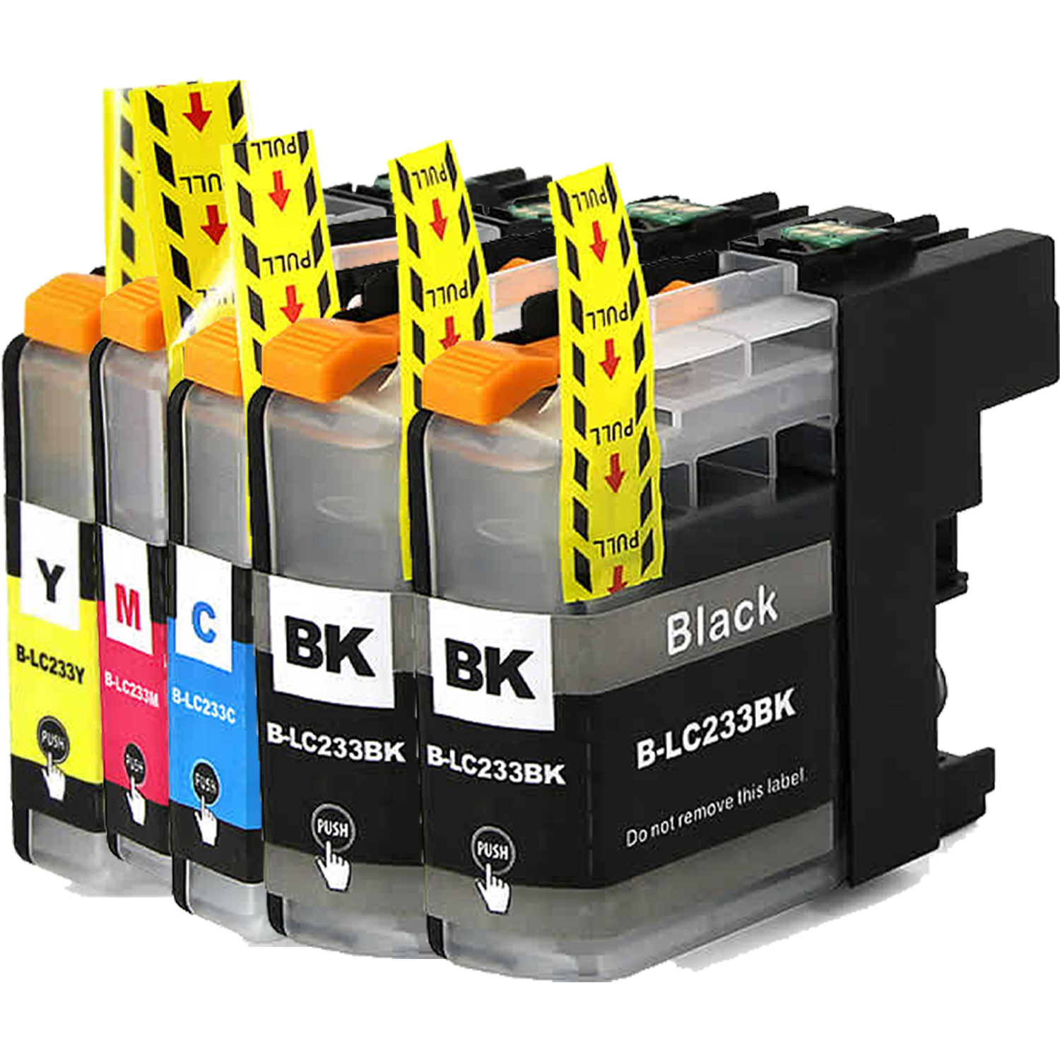 5 Pack Compatible Brother LC-233 Ink Cartridge Set (2BK,1C,1M,1Y)