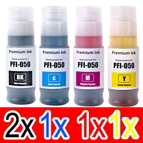 |  5 Pack Compatible Canon PFI-050 PFI050 Ink Bottle Set (2BK,1C,1M,1Y) |