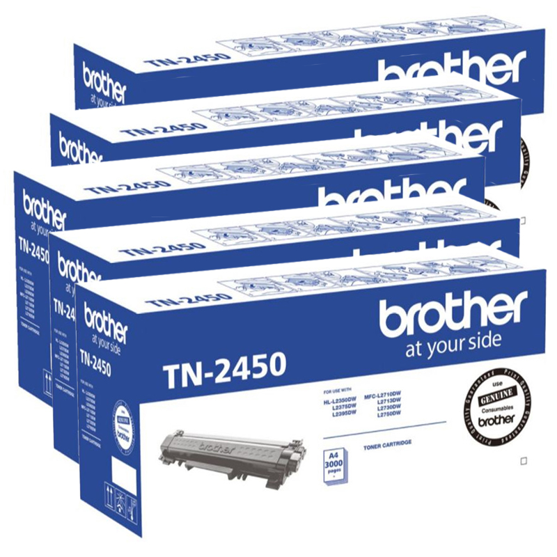![]() 5 x Genuine Brother TN-2450 Toner Cartridge High Yield |