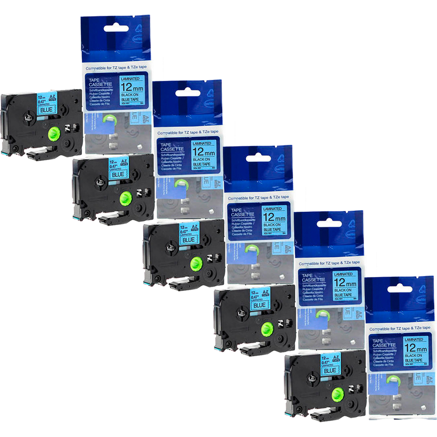 5 x Compatible Brother TZe-531 12mm Black on Blue Laminated Tape 8 metres
