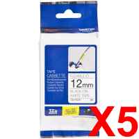 5 x Brother TZe-131 12mm Black on Clear Tape