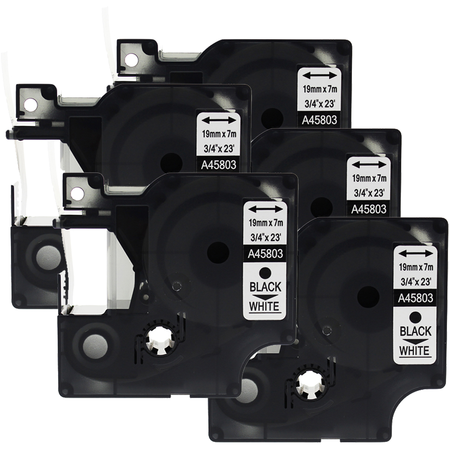 5 x Compatible Dymo D1 Label Tape 19mm Black on White 45803 - 7 metres