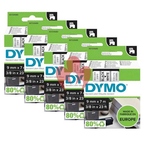 ![]() 5 x Genuine Dymo D1 Label Tape 9mm Black on White 40913 - 7 metres |