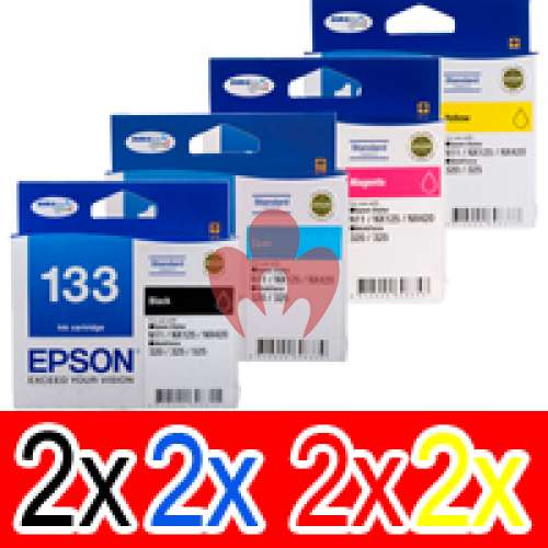 ![]() 8 Pack Genuine Epson 133 T1331 T1332 T1333 T1334 Ink Cartridge Set (2BK,2C,2M,2Y) Standard Yield |