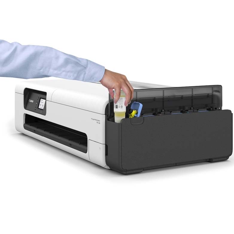 User-friendly wide format printer ideal for home use or satellite office. High-quality, high speed print resolution with quiet, and environmentally friendly technology. The Canon imagePROGRAF TC-20 is perfectly built for home/satellite office. With a small footprint, it can be placed on a desk or shelf. It also helps to manage all tasks with simplicity through its workflow software.