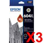 3 x Epson 604XL Black Ink Cartridge High Yield