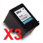 3 x HP 60XL Black Ink Cartridge CC641WA Brand: Generic