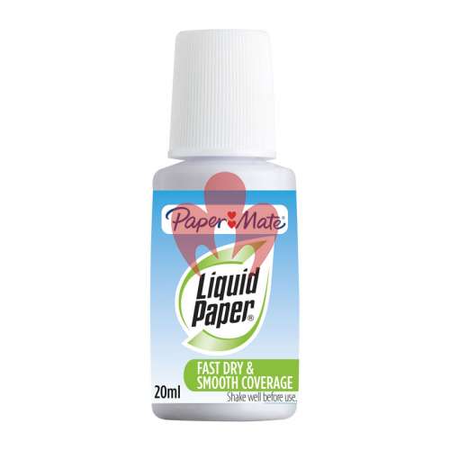 Paper Mate Liquid Paper Correction Fluid 20ml is a fast-dry, smooth coverage correction fluid for everyday corrections. All purpose bond white formula will correct anything. Spill resistant bottle with brush applicator. No thinners required.