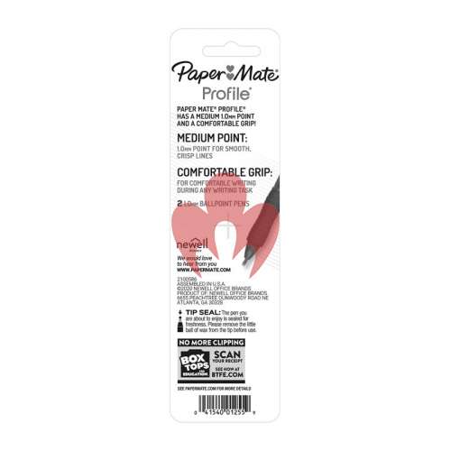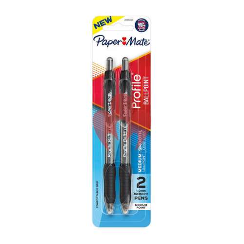 Paper Mate Profile Retractable 1.0mm Ball Point Pen Black Pack of 2 features a soft grip for comfortable writing. Convenient retractable design and color-matching barrels.