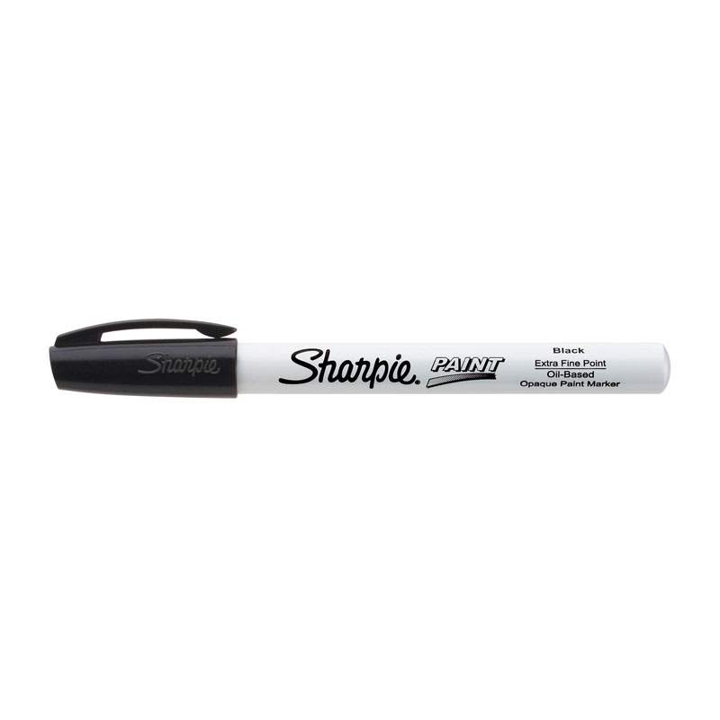 Sharpie Oil-Based Paint Marker Extra Fine Black Box of 12 dries in minutes, resists fading and smearing. Oil-based markers are permanent, AP-certified. Works on metal, pottery, wood, rubber, glass, plastic, stone, and more.